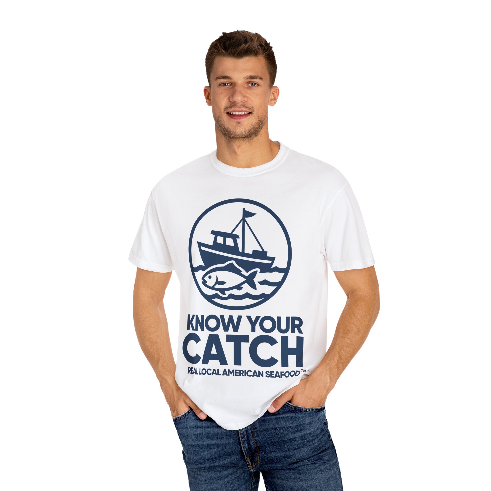 Show your support for American fishermen and honest seafood labeling with this bold, ultra-soft Know Your Catch Tee.